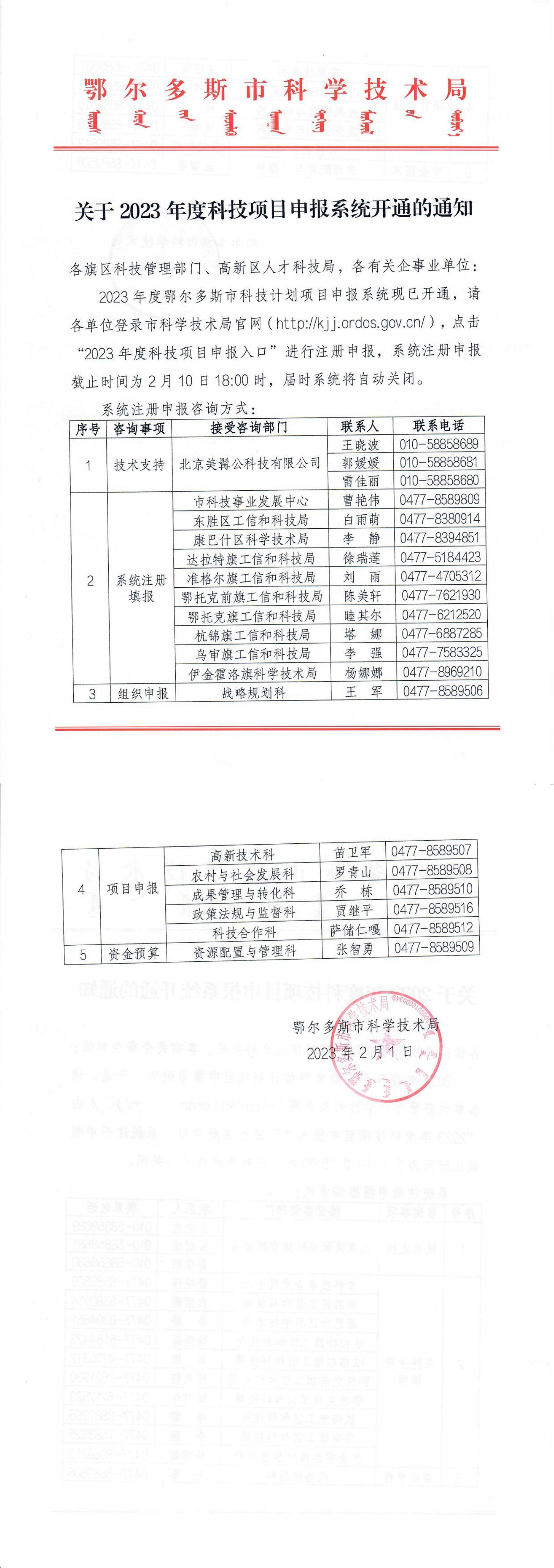 關(guān)于2023年度科技項(xiàng)目申報(bào)系統(tǒng)開(kāi)通的通知