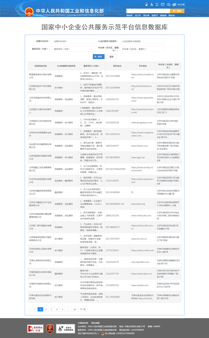 數(shù)據(jù)庫包含767家國家中小企業(yè)公共服務示范平臺。數(shù)據(jù)庫除了完整版名單外,同時提供運營機構(gòu)名稱、服務功能、服務項目、所在?。ㄗ灾螀^(qū)、直轄市)等相關搜索,同時還公布了示范平臺聯(lián)系電話、平臺地址,方便社會公眾查詢和監(jiān)督。