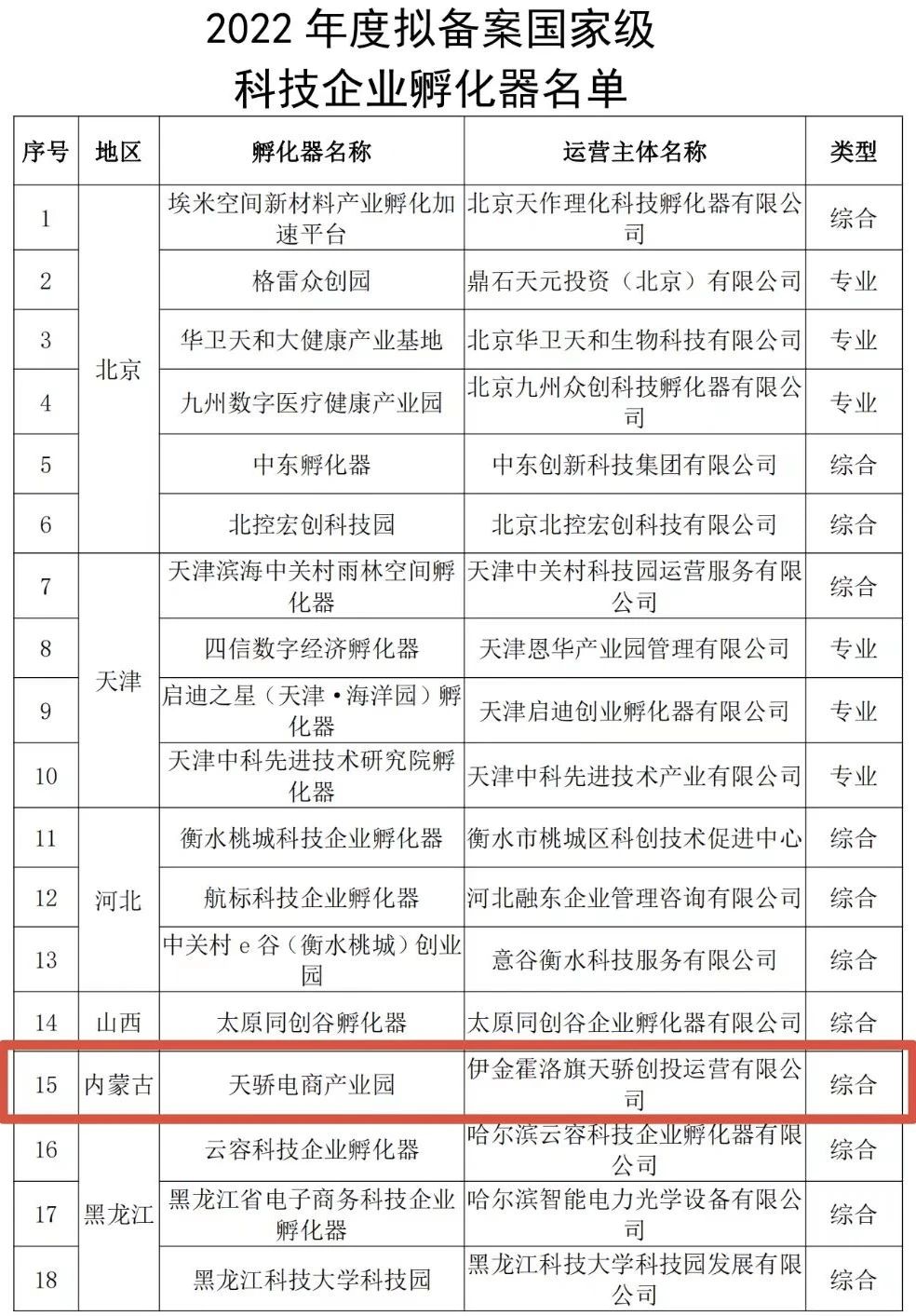 點(diǎn)擊查看《關(guān)于2022年度擬備案國家級科技企業(yè)孵化器名單公示》