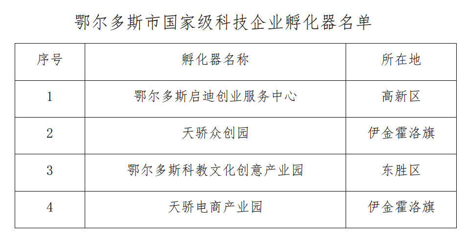 近日,科技部公布了2022年度擬備案國家級科技企業(yè)孵化器名單,鄂爾多斯市“天驕電商產(chǎn)業(yè)園”名列其中,是內(nèi)蒙古自治區(qū)2022年度唯一獲批的國家級科技企業(yè)孵化器。截至目前,鄂爾多斯市國家級科技企業(yè)孵化器數(shù)量增至4家。根據(jù)我市“科技新政30條”,對新認(rèn)定國家級科技企業(yè)孵化器,一次性給予200萬元獎補(bǔ)資金。