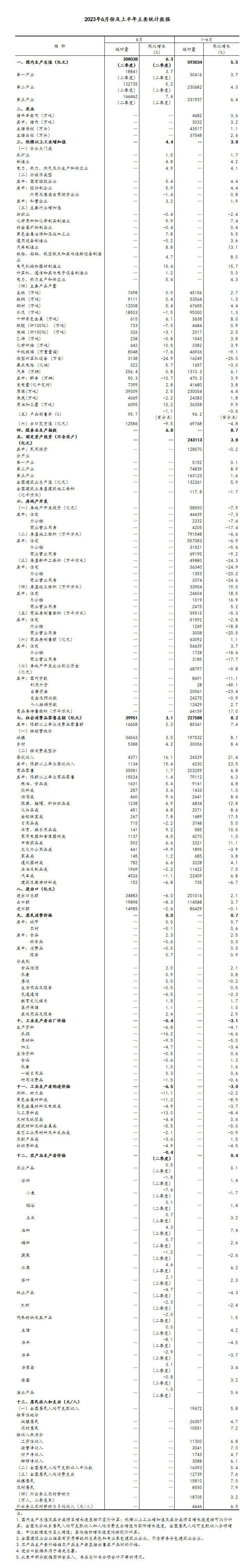 (1)國內(nèi)生產(chǎn)總值及其分類項目增長速度按不變價計算,規(guī)模以上工業(yè)增加值及其分類項目增長速度按可比價計算,均為實(shí)際增長速度;其他指標(biāo)除特殊說明外,按現(xiàn)價計算,為名義增長速度。