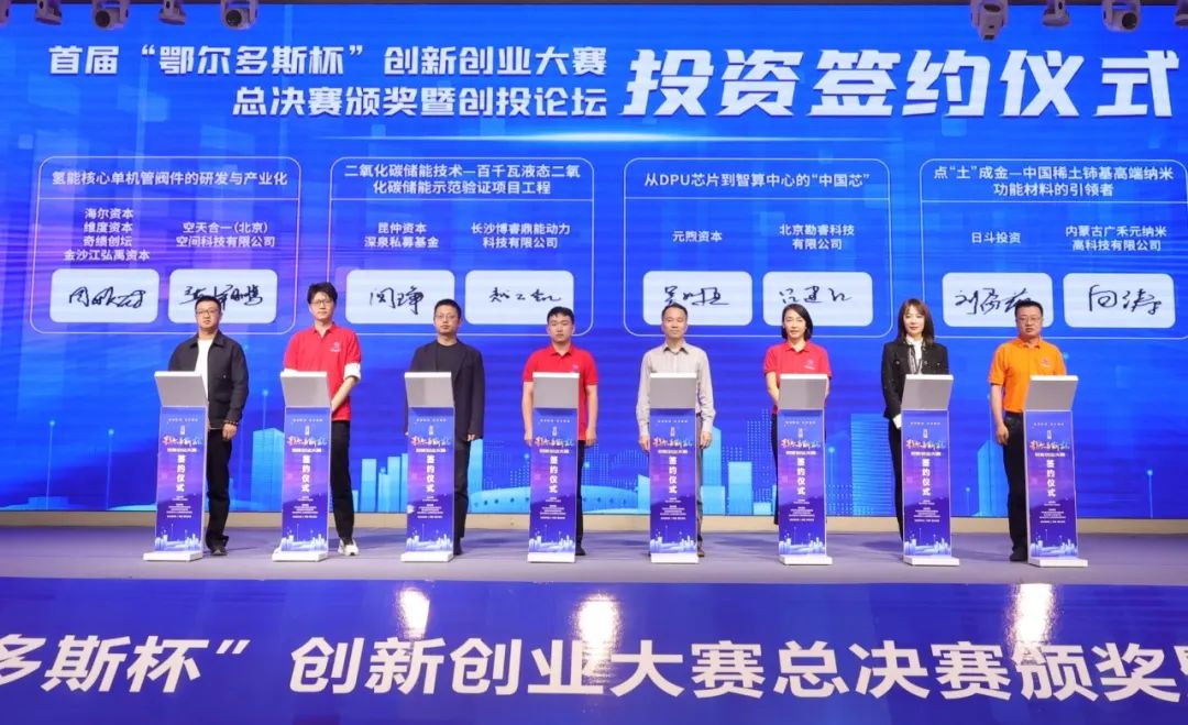 為了給更多創(chuàng)新創(chuàng)業(yè)團隊提供戰(zhàn)略引導、市場拓展、資本賦能等方面的支持,還舉辦了創(chuàng)投論壇。邀請高榕資本董事總經(jīng)理辛旺、英諾天使基金執(zhí)行董事丁昳婷分別以《碳中和背景下的投資方向和投資機遇探究》和《擁抱早期科技投資:掌握未來發(fā)展的關鍵》為題作了主旨演講。8家投資機構(gòu)在現(xiàn)場與《氫能核心單機管閥件的研發(fā)與產(chǎn)業(yè)化》《二氧化碳儲能技術——百千瓦液態(tài)二氧化碳儲能示范驗證項目工程》《從 DPU 芯片到智算中心的“ 中國芯”》和《點“土”成金—中國稀土鈰基高端納米功能材料的引領者》4個項目完成簽約,簽約金額1.49億元,推動獲獎項目在鄂爾多斯落地。