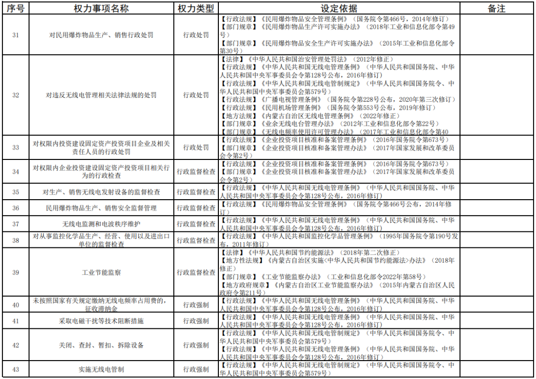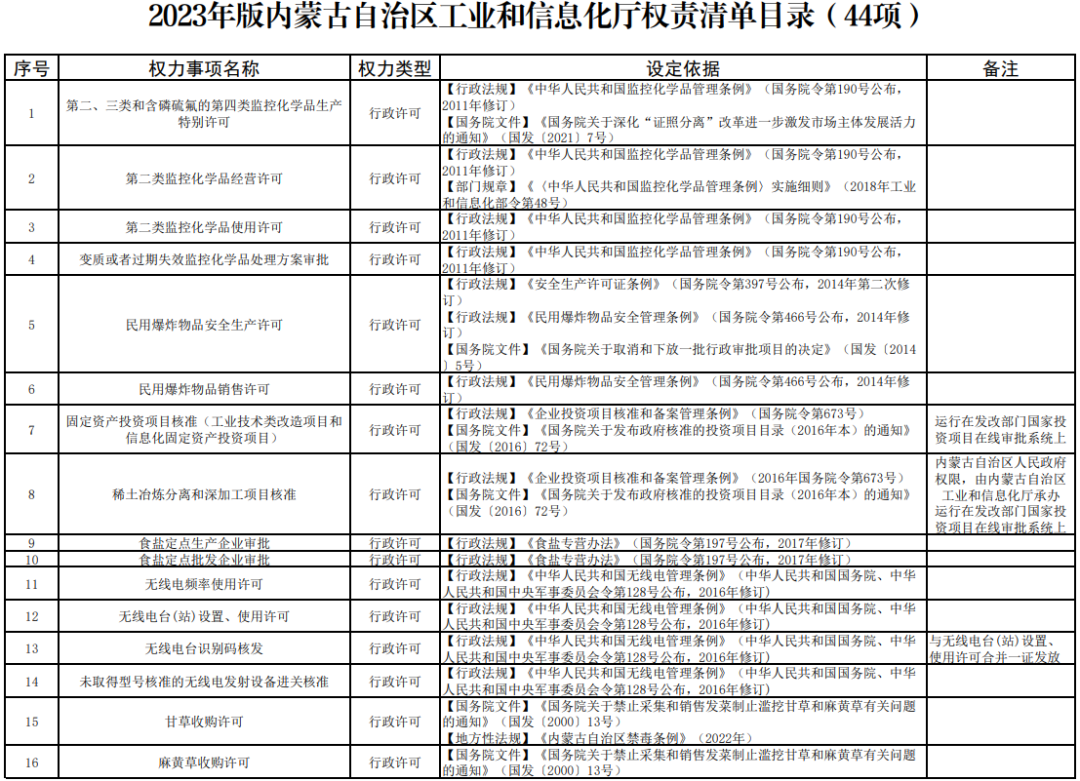 2023年版內(nèi)蒙古自治區(qū)工業(yè)和信息化廳權(quán)責(zé)清單目錄(44項(xiàng))